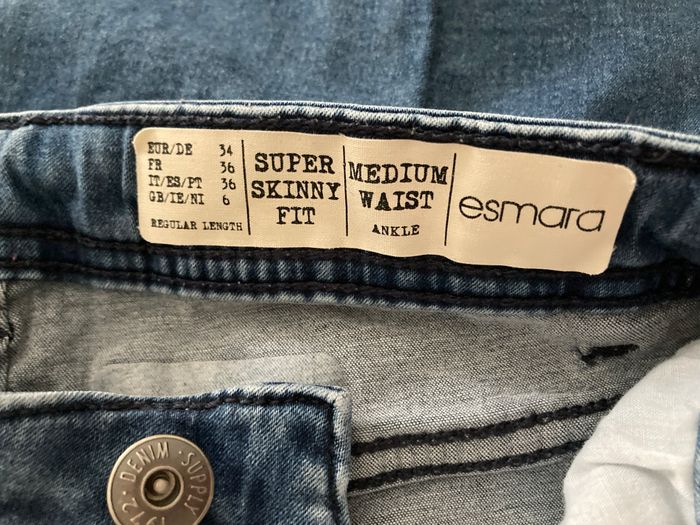 taille FR 36 (EUR 34) largeur à plat au niveau de la taille 30 cm hauteur 101 cm, entrejambe 76 cm peu porté