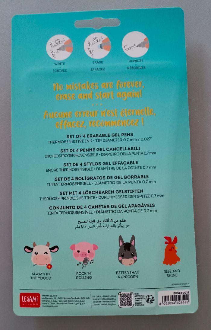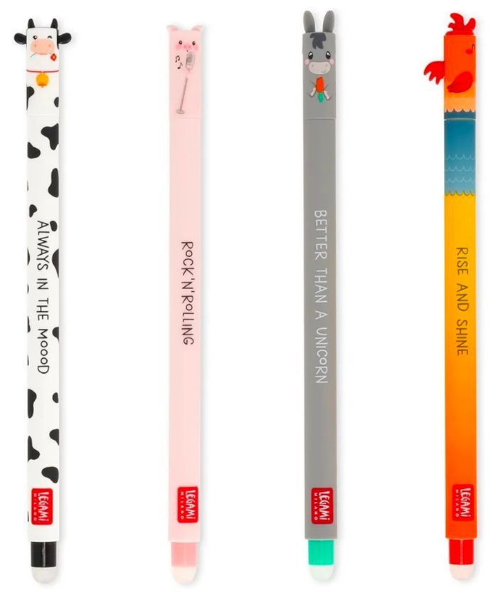 Lot de 4 stylos effaçables Legami neufs thème Animaux de la ferme