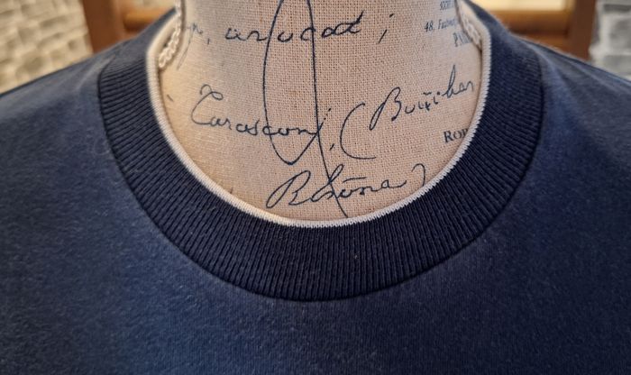 Tee-shirt bleu marine avec col et bords des manches blancs - photo numéro 1