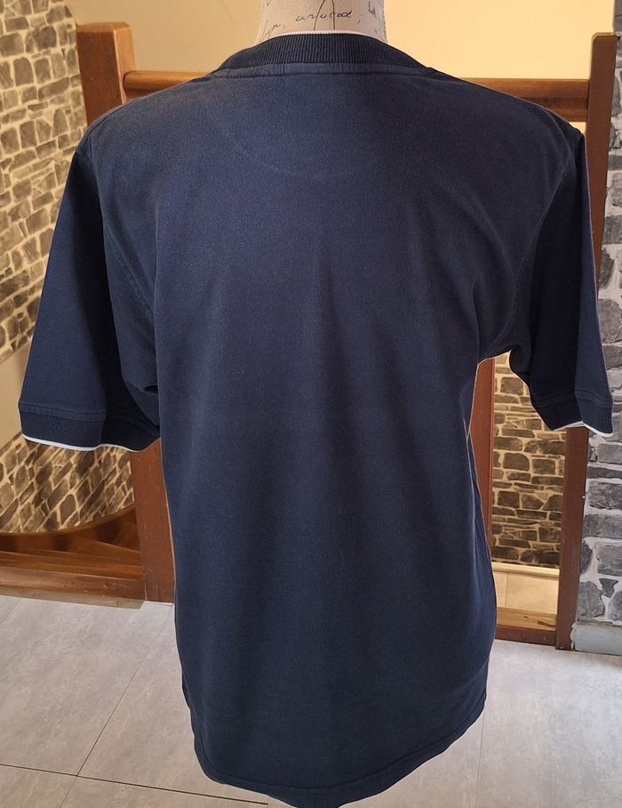 Tee-shirt bleu marine avec col et bords des manches blancs - photo numéro 4