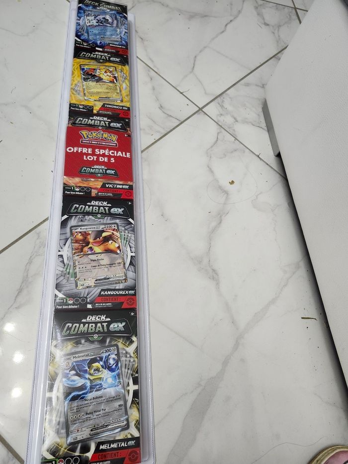 Neuf . N’hésitez pas à faire des lots. Pokémon - Jeu de cartes à collectionner - Deck de combat Le deck de combat du jeu de cartes à collectionner Pokémon contient : - 1 deck immédiatement jouable de 60 (x5) cartes - 3 cartes de référence (x5) - 1 livret de règles - 1 support de jeu pour 1 joueur ( x5) - 1 jeu de jetons de dégâts (x5) - 1 grande pièce de monnaie (×5) - 1 boîte de deck (×5 ) - 1 guide de stratégie - 1 carte de code pour jouer en ligne avecdeck (×5) Recommandation d'âge du fabricant : convient aux enfants à partir de 6 ans