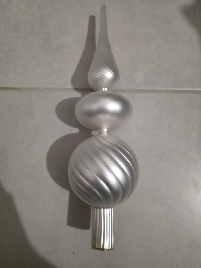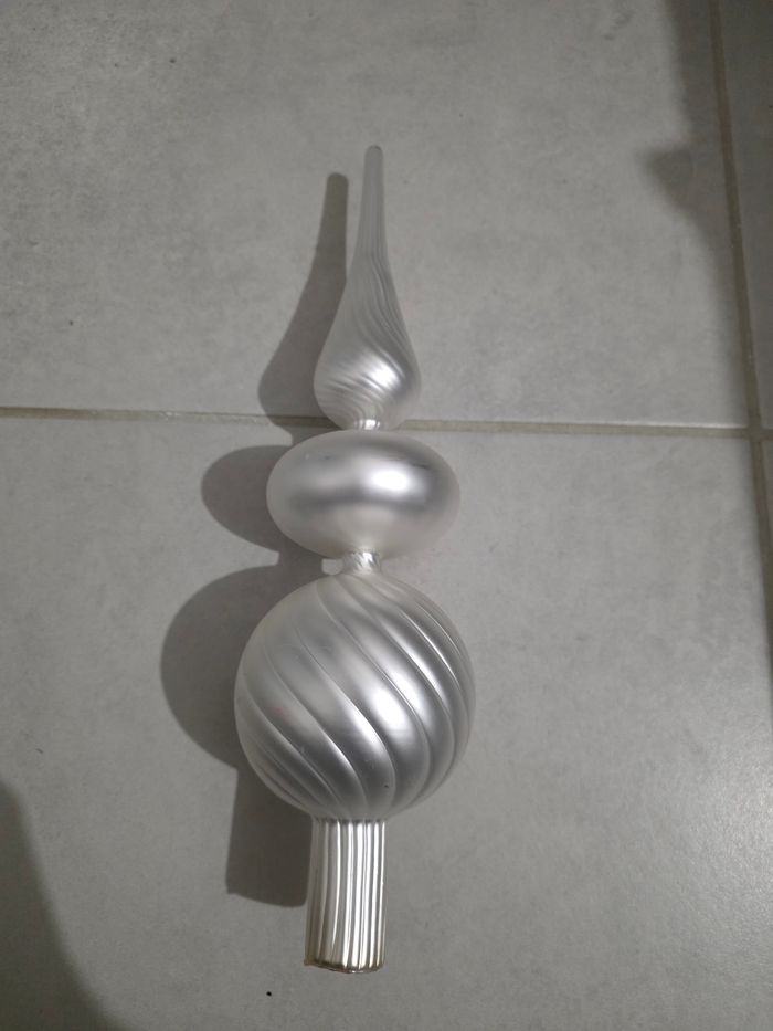 Je vends cette pointe de sapin argentée, un élément décoratif élégant et moderne pour parfaire votre intérieur. - Type de produit : Bibelot décoratif - Matière : Acier - Couleur : Argenté - Style : Contemporain Bon état Je reste ouvert à une discussion raisonnable, surtout si vous consultez mes autres annonces — il y a peut-être un lot qui pourrait vous intéresser. N’hésitez pas à me contacter pour toute question !