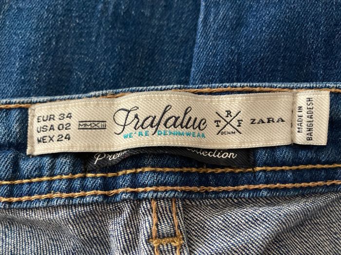 taille 34 largeur à plat au niveau de la taille 32 cm hauteur totale 95 cm, entrejambe 75 cm fermeture zippée aux chevilles peu porté