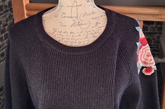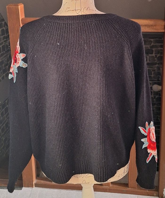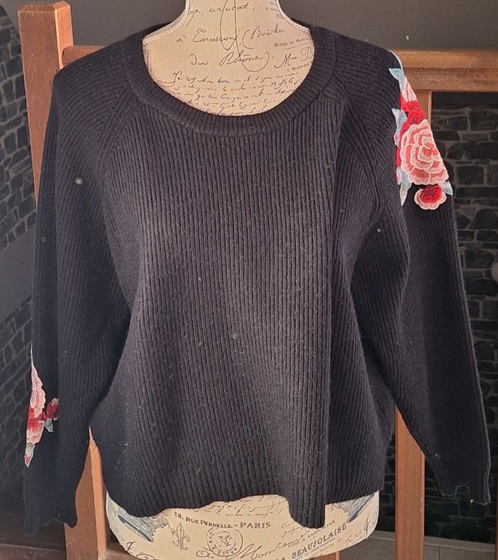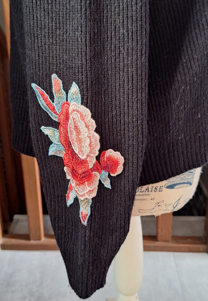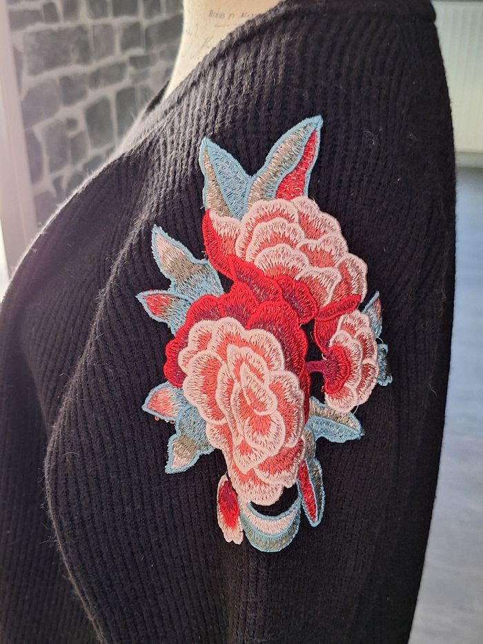 Superbe pull noir avec des fleurs brodées aux manches