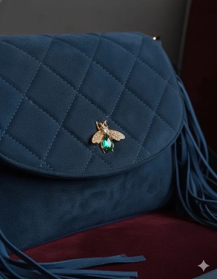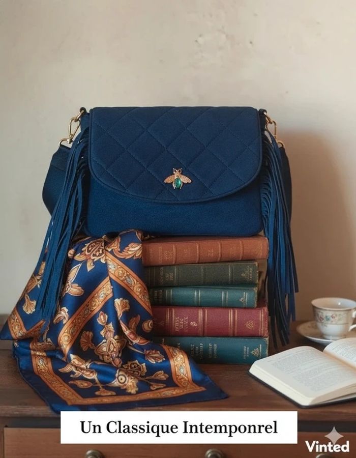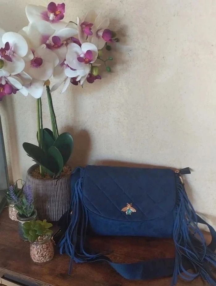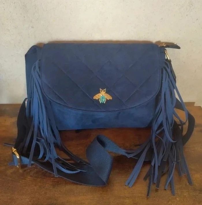 Sac Tendance bleu marine avec Franges ✨ Articles Neuf et jamais porté ! Prix : 30€ 💗Ce magnifique sac est la pièce qu'il vous faut pour ajouter une touche chic et bohème à toutes vos tenues. 💗Sa couleur bleu marine est ultra-féminine et le détail de l'abeille dorée apporte une touche de luxe. ✨(Idéal pour offrir ou se faire plaisir) Bandoulière réglable (porté épaule ou croisé). ✨Format : Idéal pour y glisser téléphone, portefeuille et clés (parfait pour les soirées ou le quotidien). ✨Un must-have 🫶 Disponible immédiatement , Envoi rapide et soigné 🩷Remise de -30% activé dès 3 articles achetés 🩷