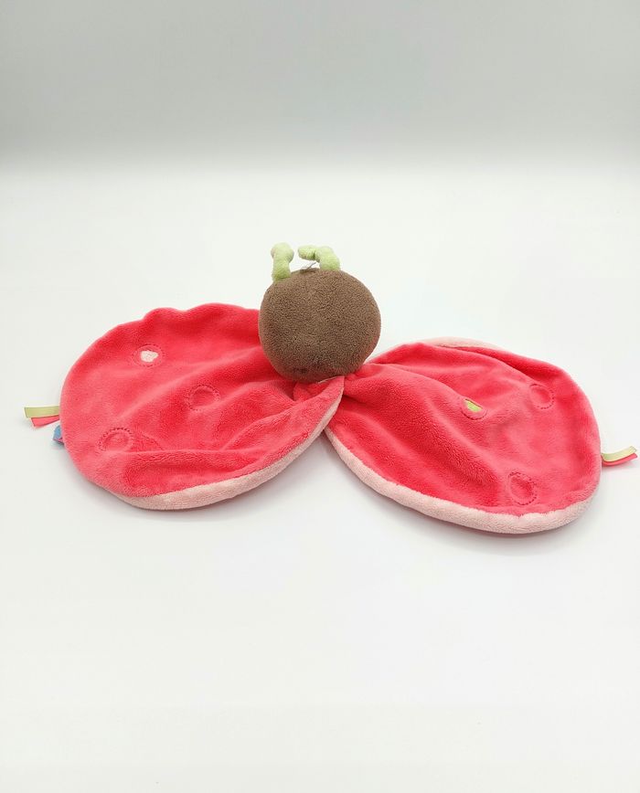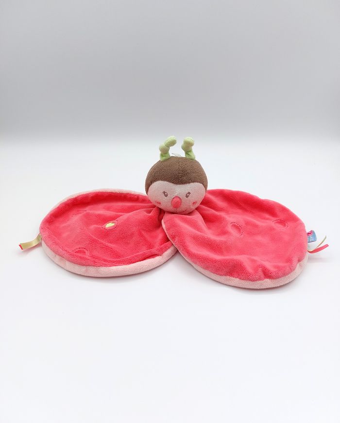 Doudou plat coccinelle papillon rose marron SUCRE D’ORGE vert brodé coeur - photo numéro 1