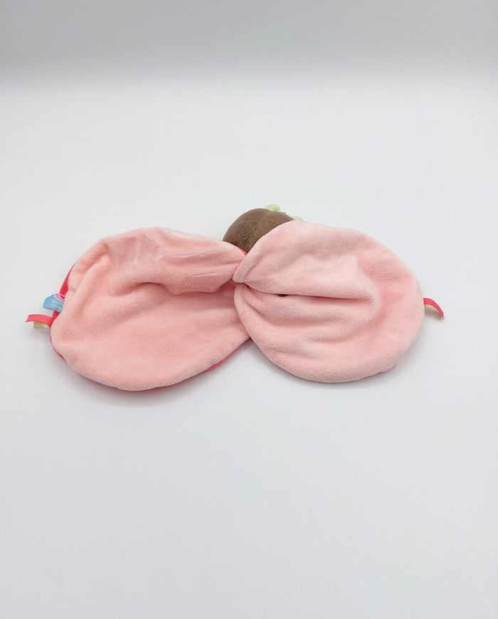 Doudou plat coccinelle papillon rose marron SUCRE D’ORGE vert brodé coeur - photo numéro 2
