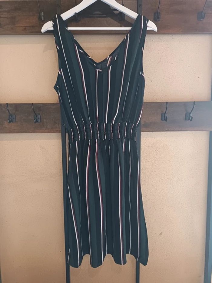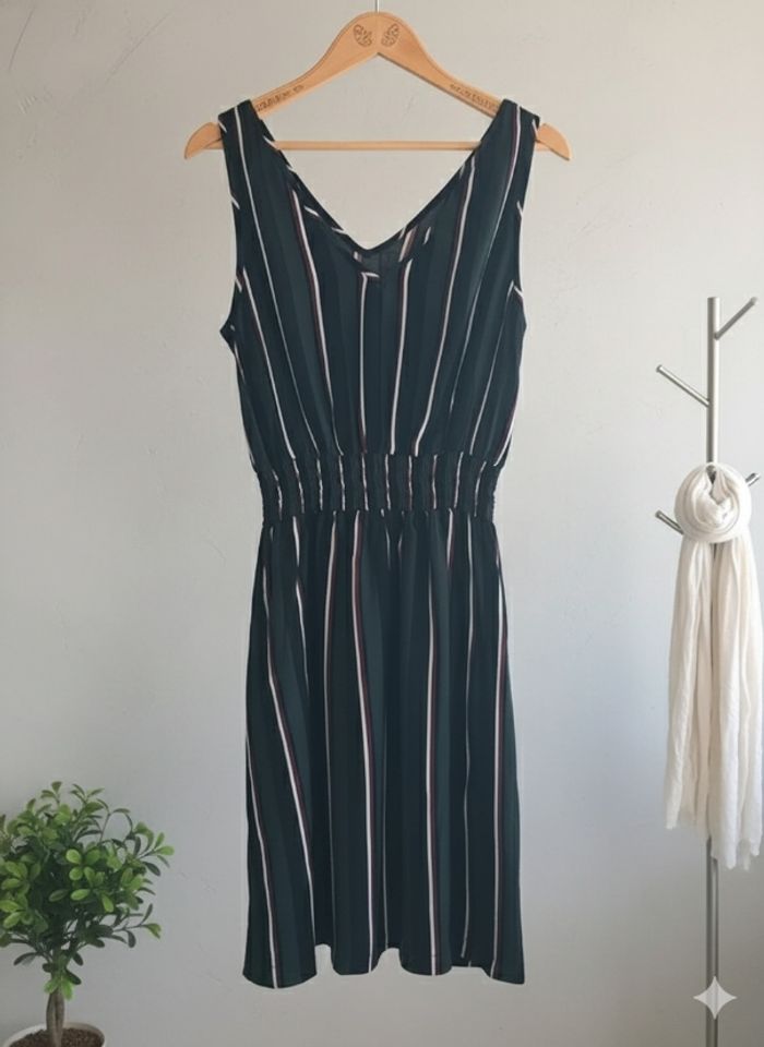 Très jolie Robe rayée Taille : XL – Très bon état Prix : 12€ Chic et confortable ! Superbe robe sans manches, idéale pour l'été ou la mi-saison ! Ses rayures élégantes (vert foncé, noir, bordeaux et blanc) lui donnent un look très chic. Elle est élastiquée à la taille pour un ajustement parfait et un confort optimal. Portée avec des baskets blanches pour un look décontracté ou des sandales pour une tenue plus habillée ! 🛒 Ne la laissez pas s'échapper ! Disponible immédiatement Envoie rapide et soigné 🩷Remise activé de -30% dès 3 articles achetés 🩷