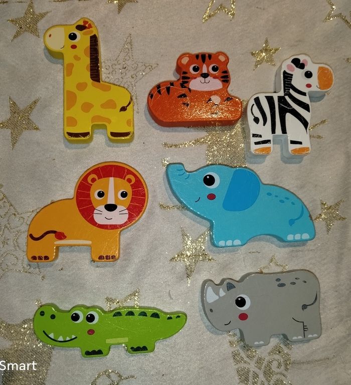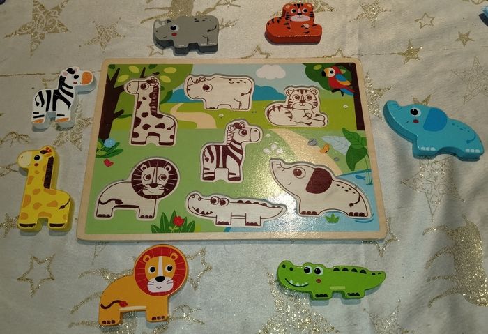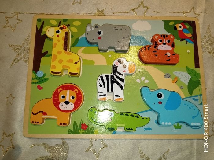 Je vends ce puzzle en bois représentant des animaux de la savane. Quelques micro rayures sont présente.