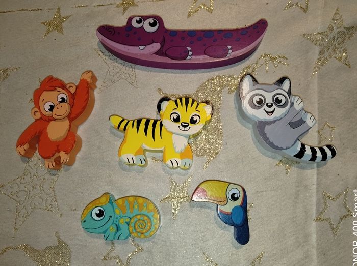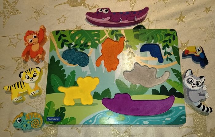 Je vends ce puzzle aimanté Ravensburger représentant des animaux de la jungle. Des micros rayures sont présentes. Idéal pour le transport du fait que les pièces sont aimantées.