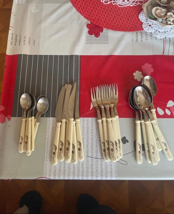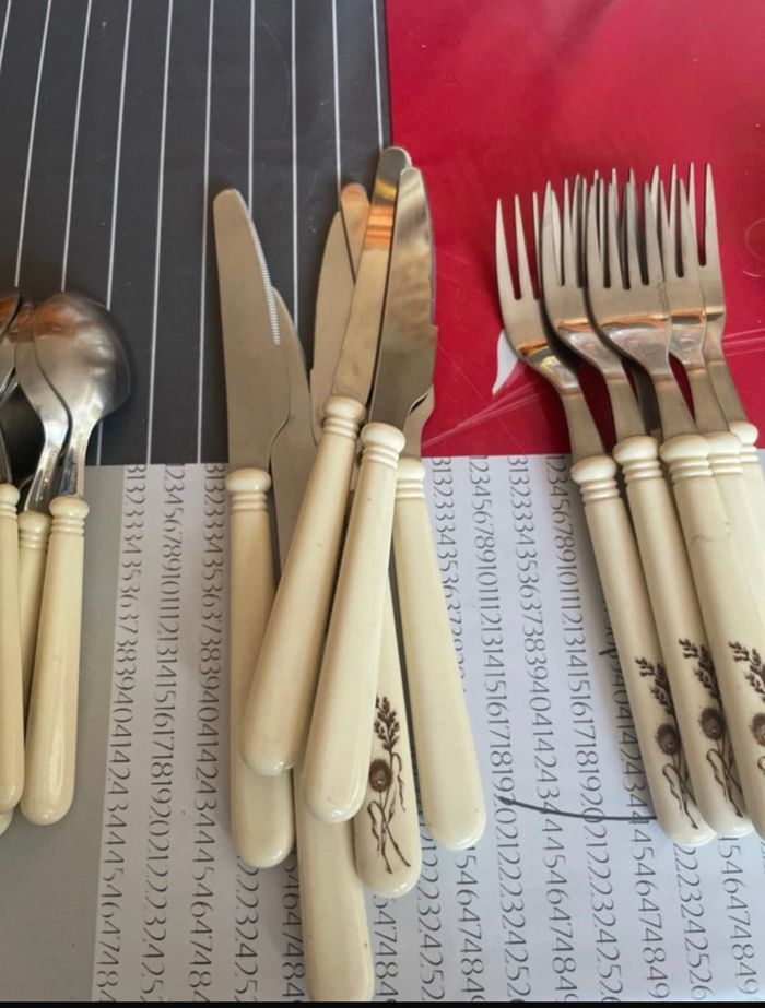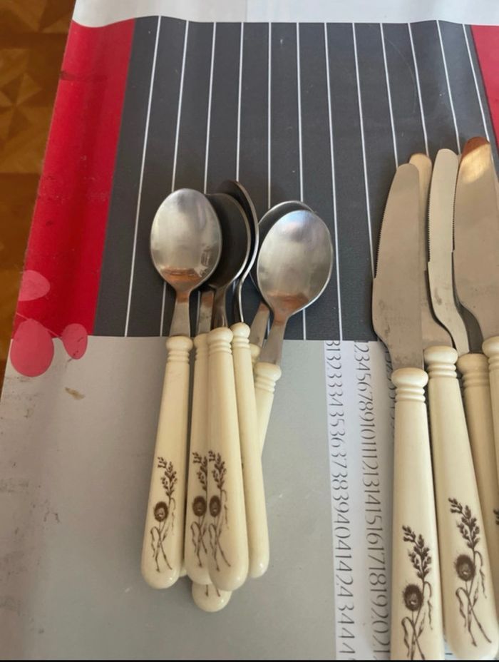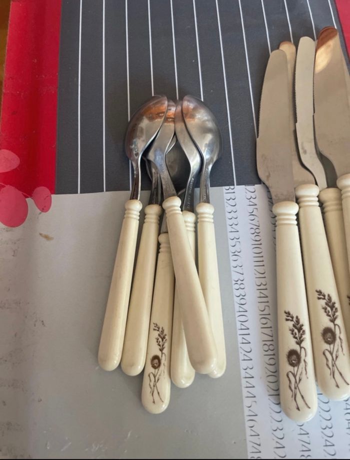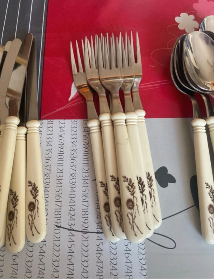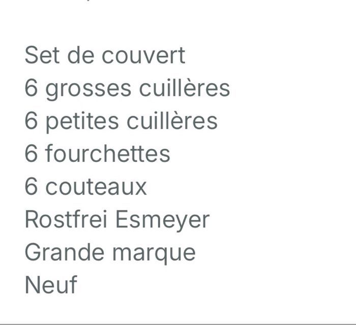 Lot de couvert 6 couteaux 6 fourchettes 6 grosses cuillères 6 petites cuillères Rostfrei Esmeyer Grande marque Neuf