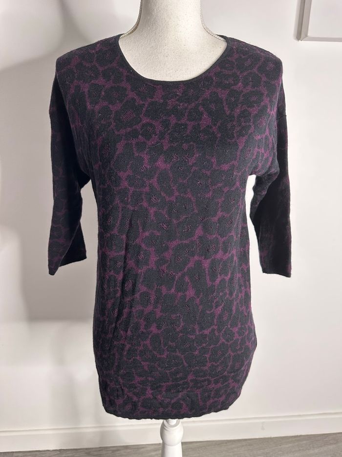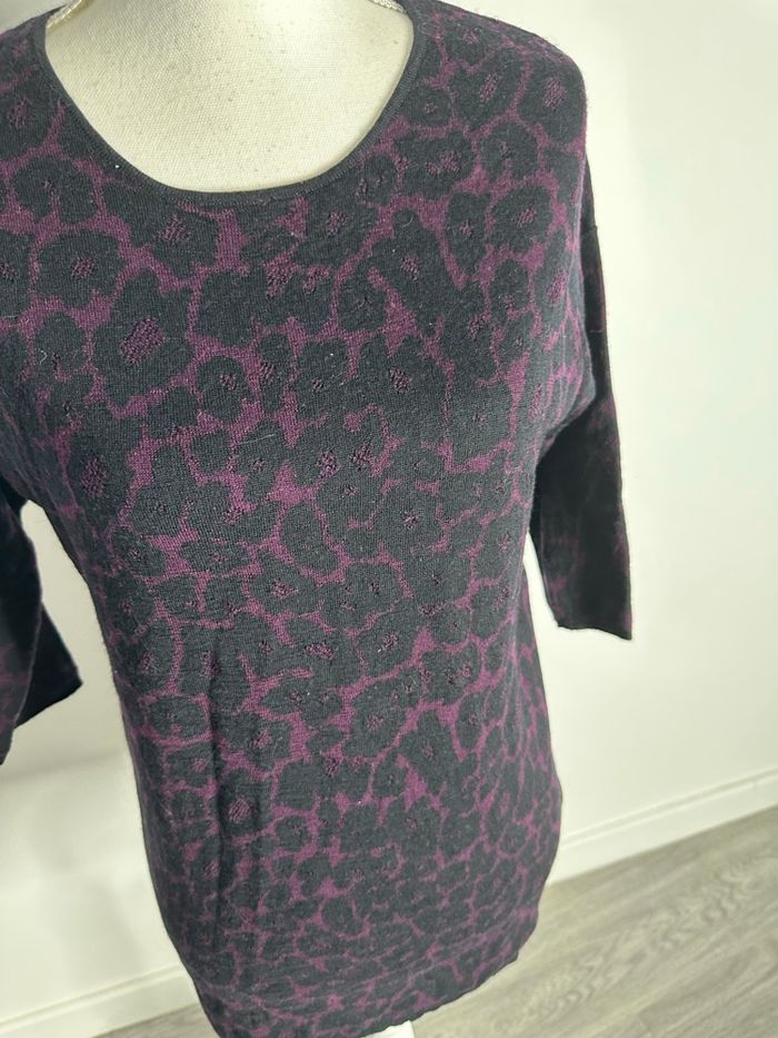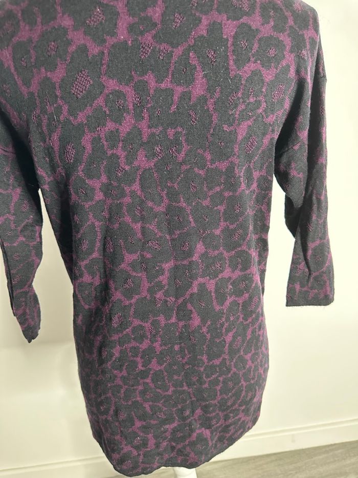 Pull tunique léopard en laine noir et violet Gérard Darel T1 36 S - photo numéro 3
