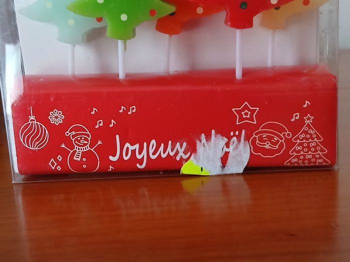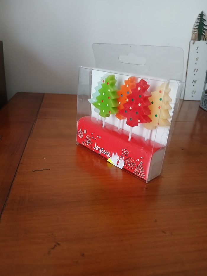 Articles neufs, sous emballage. Paquet de 4 bougies Sapins; 4 coloris différents. Hauteur de 4 cm, sans le pic // voir photos pour détails . À Noter : trace étiquette prix sur emballage ( se voit sur les photos)
