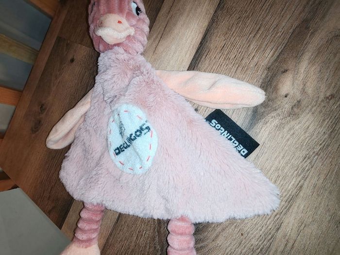 Les Déglingos Pomelos l'autruche Doudou plat rose 25 cm environ Tbe Étiquette marque présente 15 euros envoi en relais