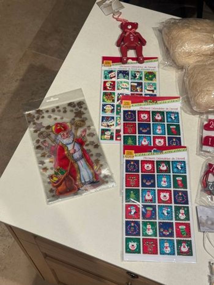 • 2 lots de pinces décoratives numérotées 1–24 pour créer un calendrier de l’Avant (motifs étoiles et chaussettes de Noël )