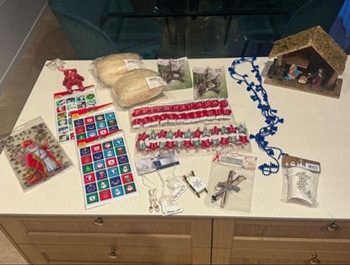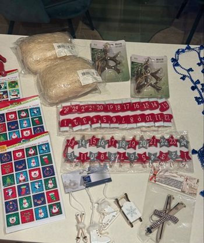 Superbe lot de décorations de Noël neuves avec étiquettes (sauf la crèche et la guirlande bleue), idéal pour créer une ambiance chaleureuse de Noël, préparer un calendrier de l’Avent DIY et de bons biscuits de noël.