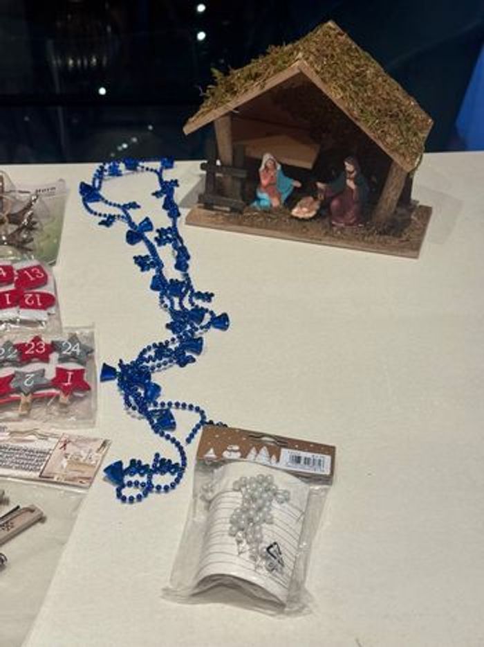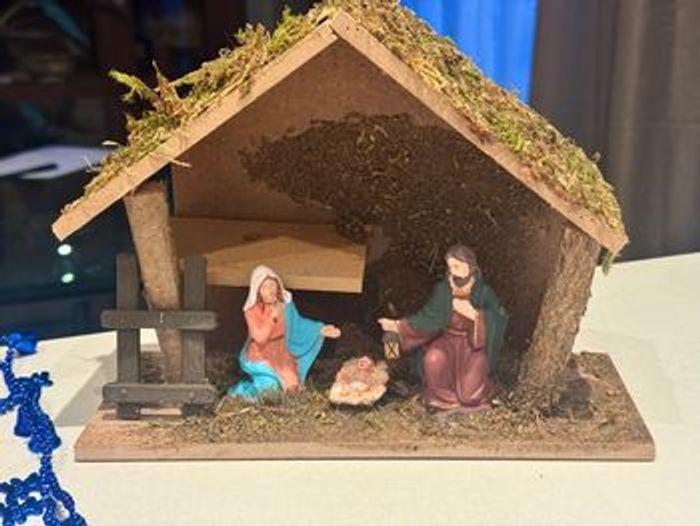• 1 crèche avec 3 personnages : Marie, Joseph et Jésus