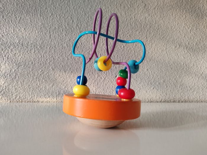 Petit Boulier en spirale avec ses perles au couleurs vives et son mouvement de balancement sur socle en bois Hauteur 15cm