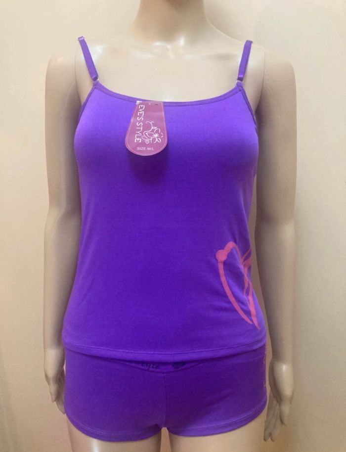 📦 Caraco composé d'un top brettelle et d'un shorty. Neuf avec étiquette 🏷️ Composition : 80% Polyamide - 15 % Elasthanne - 5% Coton Autre coloris dispo : violet Taille 36 (ne pas tenir compte de la taille sur les étiquettes car taille petit selon moi) EVE'S STYLE ⚠️ pour des questions évidentes d'hygiène, aucun retour sur cet article 🚨remise sur lot activée ✨envoi rapide et soigné