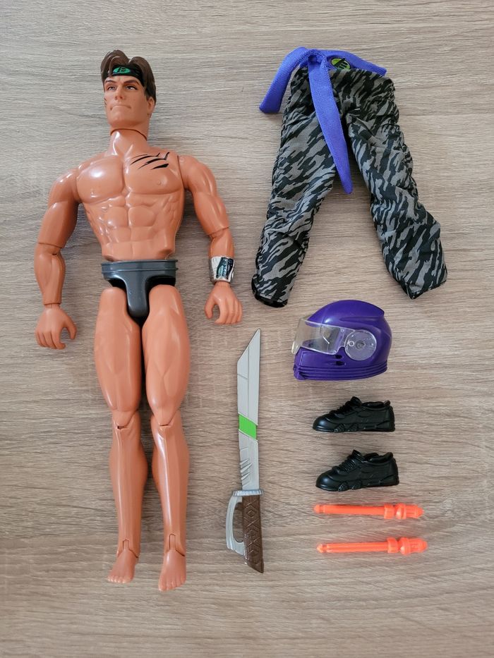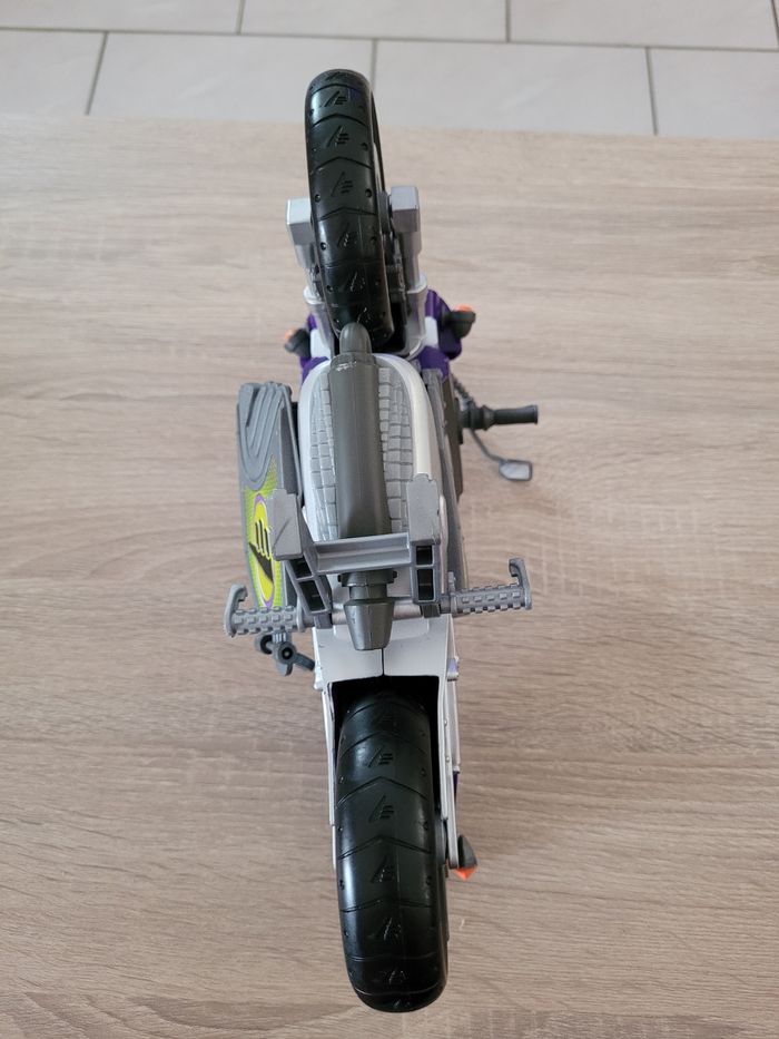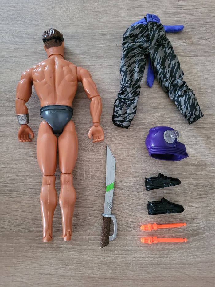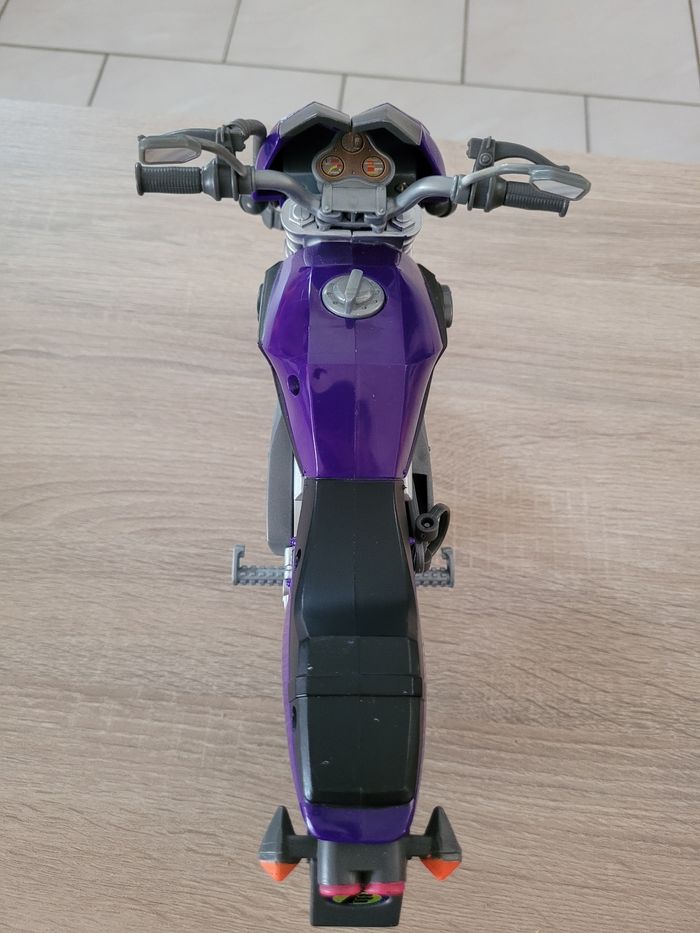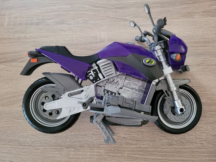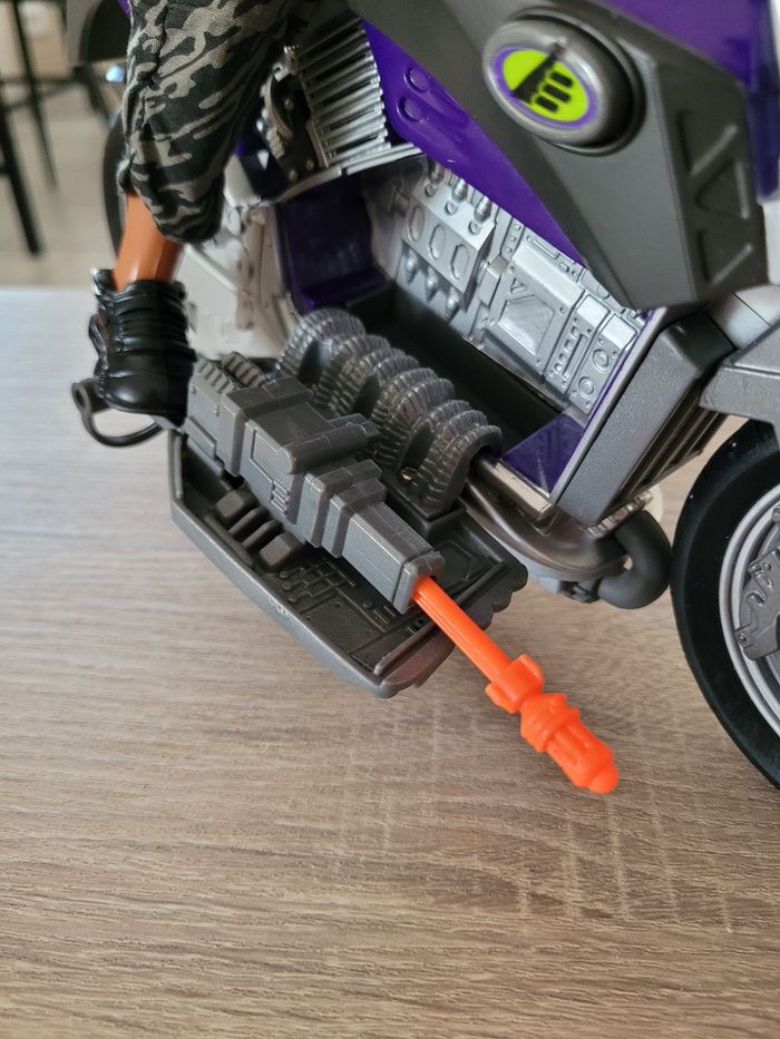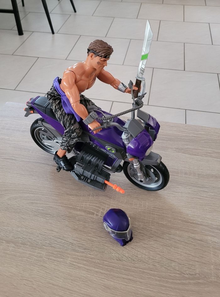 Vend figurine vintage Max Steel Panther Claw combat environ 30cm avec sa moto et accessoires. Date de 1998 pour la figurine et de 2000 pour la moto. Le mécanisme d'envoi du missile est fonctionnel avec le pied qui appuie comme montré en dernière photo. En très bon état juste des signes d'usures liés au jeu (voir photos). Vendu tel que sur la publication.