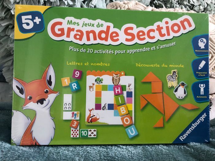 Bonjour, Je vends cet atelier les jeux de grandes sections ravenssbuger idéal pour apprendre en s’amusant, d’autres boîtes du même niveau dans les ventes.Boîte sous blistrer Envoi en J+1 Max Possibilité de faire papier cadeau