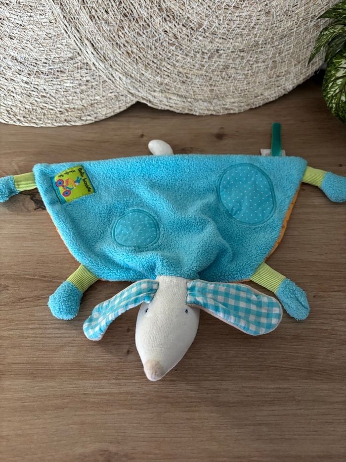 Très bon état Envoi rapide #doudouplatlapinpinpinbicyclettemoulinroty #doudouplatlapinbleuorangepinpinmoulinroty