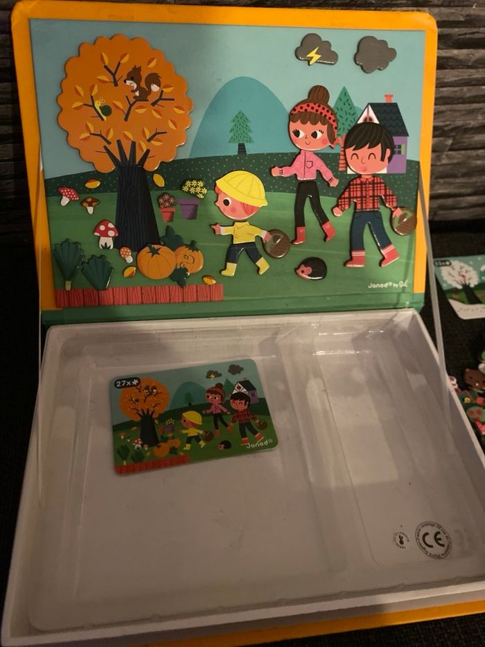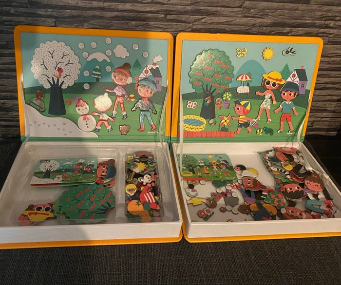 Le Magnetibook 4 saisons de Janod est un jeu éducatif avec un couvercle magnétique pour reproduire les 4 scènes des saisons.