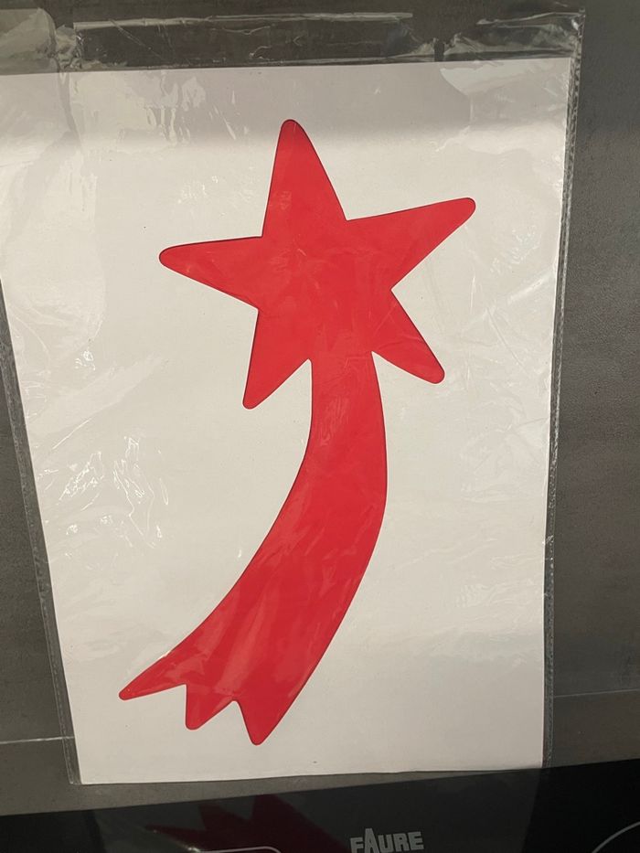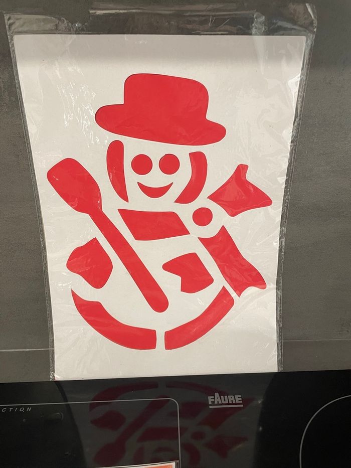 Lot de produits neuf comprenant : Une planche de stickers à coller sur les fenêtres Une pochette avec 2 décorations de sapin à créer 2 pochoirs en carton un bonhomme de neige et une étoile