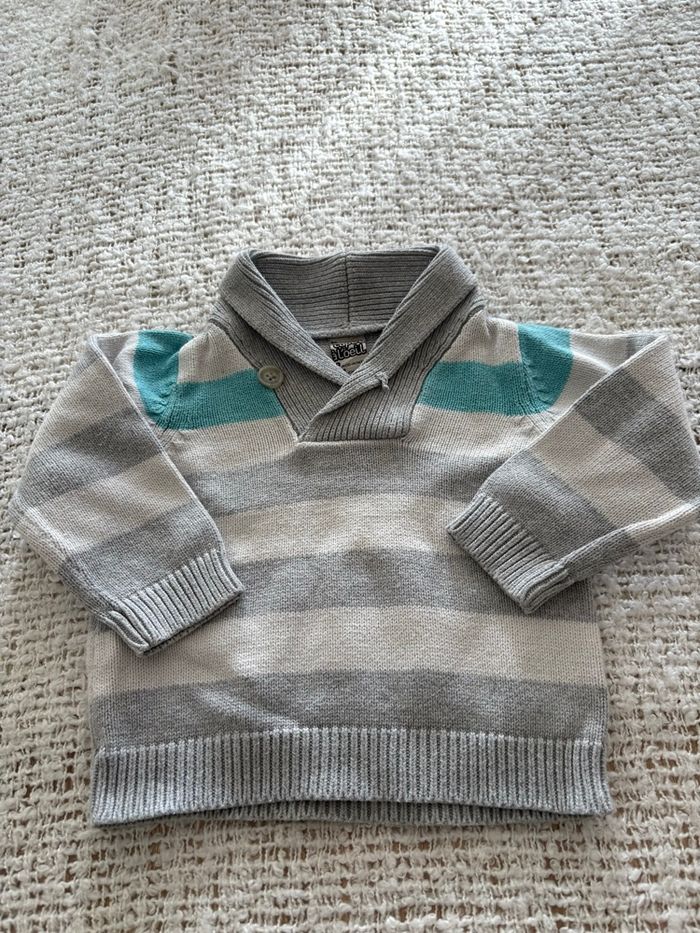 Pull rayé gris et blanc « Tape à l’œil » 9 mois TBE
