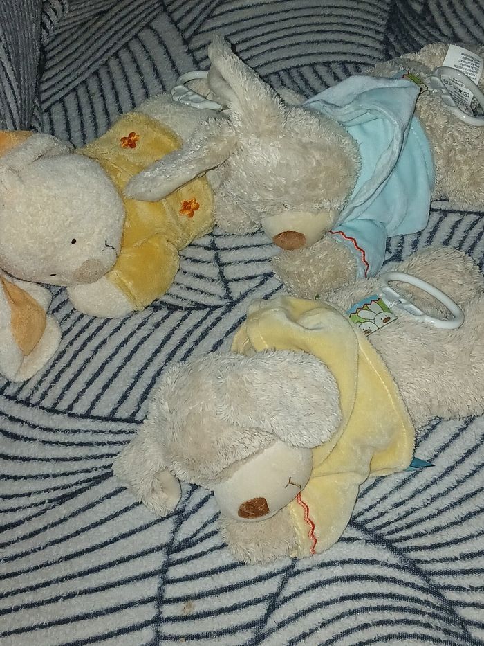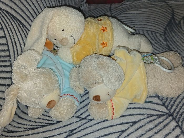 La musique est fonctionnelle, ils sont en très bon état Le prix est pour 1 doudou...le lapin est vendu