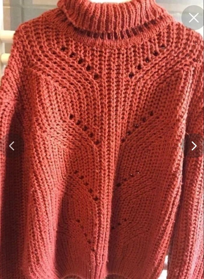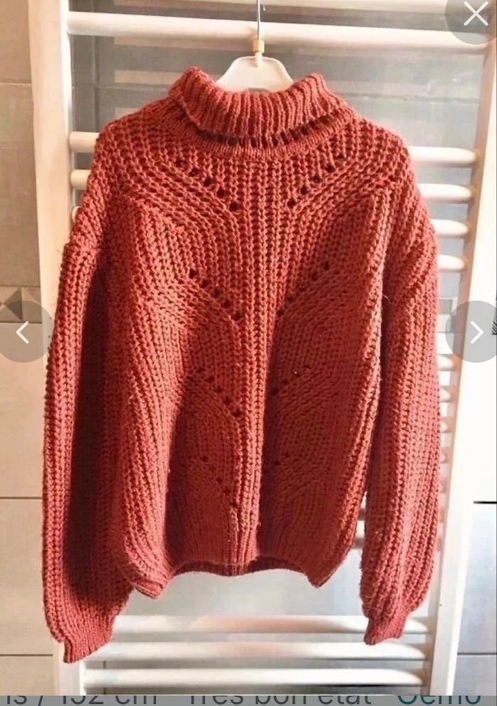 Pull col roulé Gemo couleur terracota avec mailles ajourées sur le devant taille 12 ans en tbe(quelques petites peluches) à 6 euros - photo numéro 1