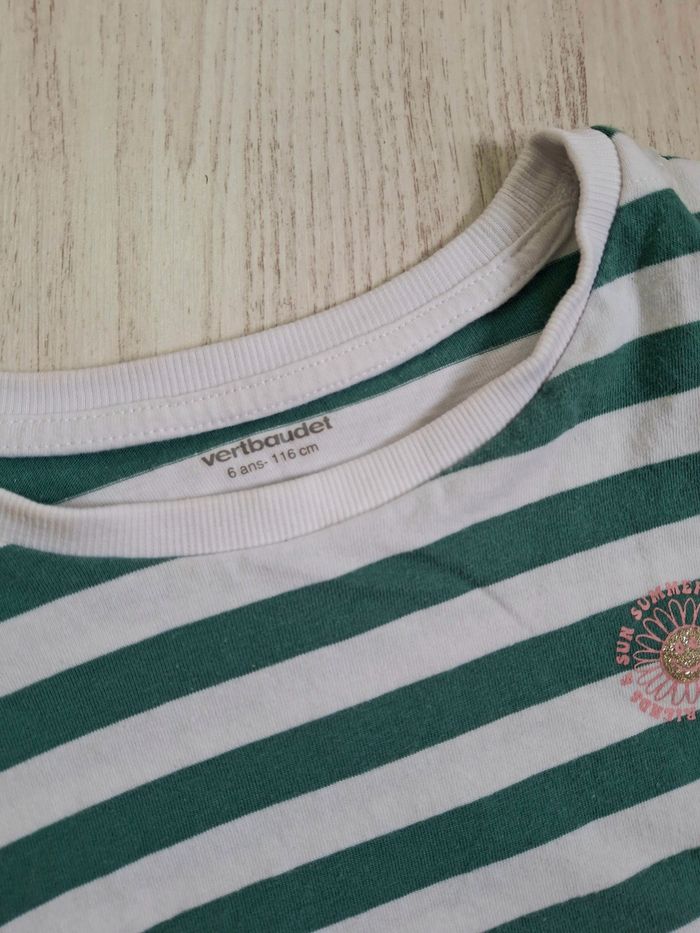 T-shirt marinière vert/blanc fille  Vertbaudet – 6 ans - photo numéro 2
