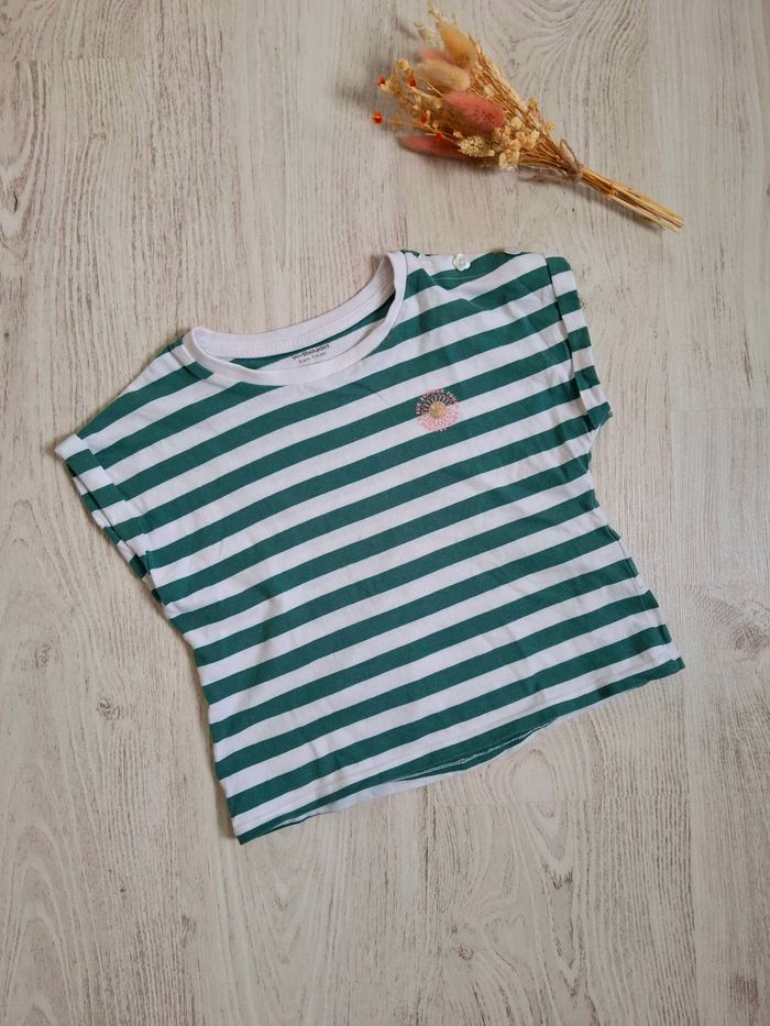 T-shirt marinière vert/blanc fille  Vertbaudet – 6 ans