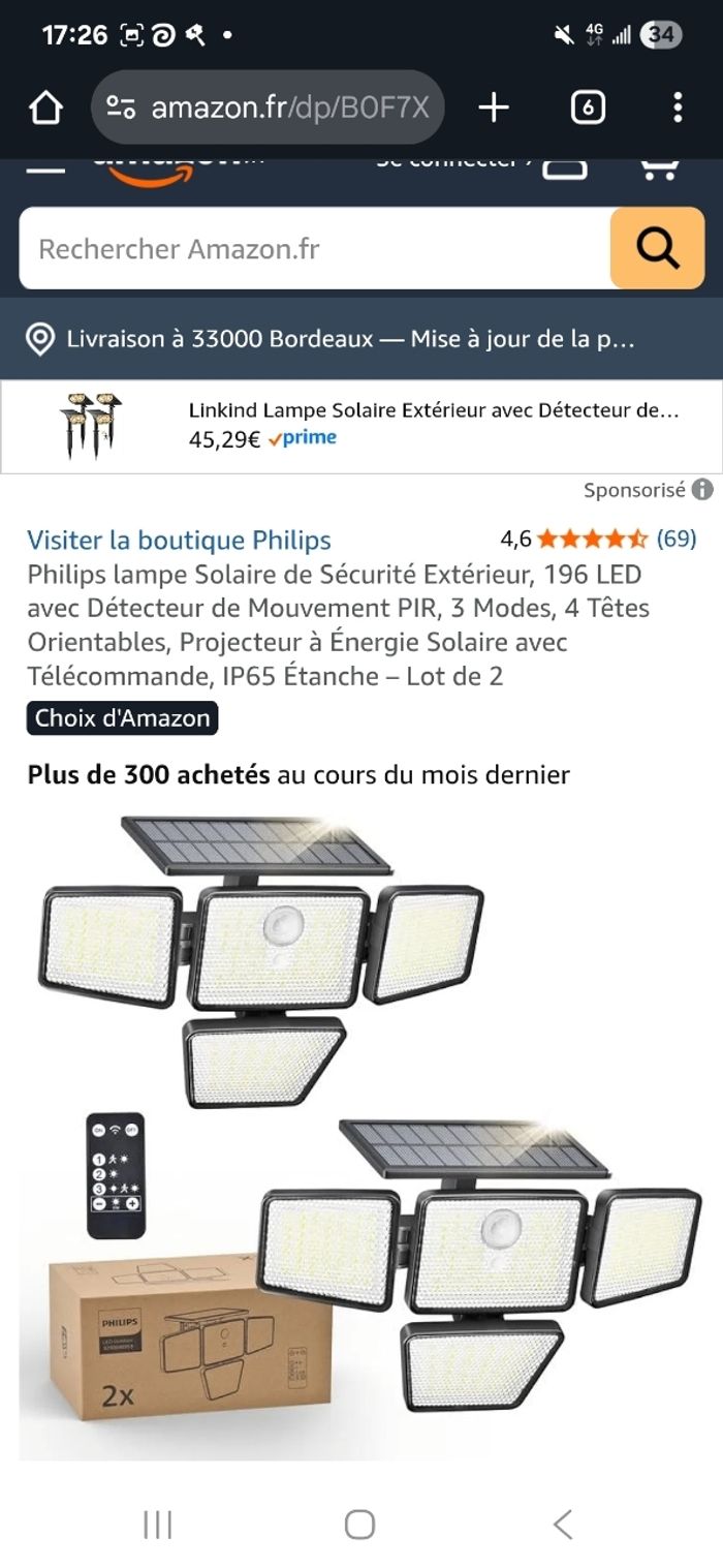 lot de 4 lampe solaire LED Philips
