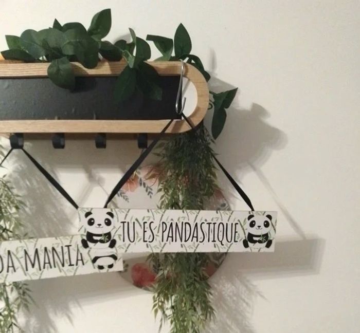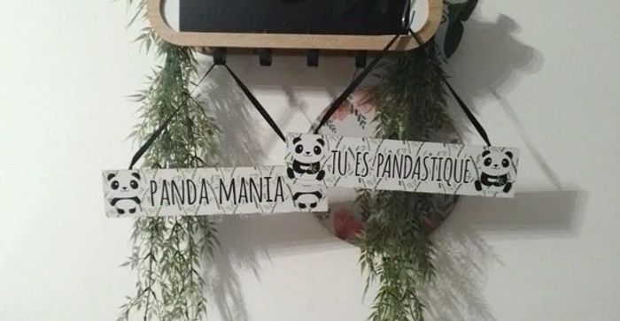 2 plaques décoratives thème panda humoristique ( 37x8cm) - photo numéro 3