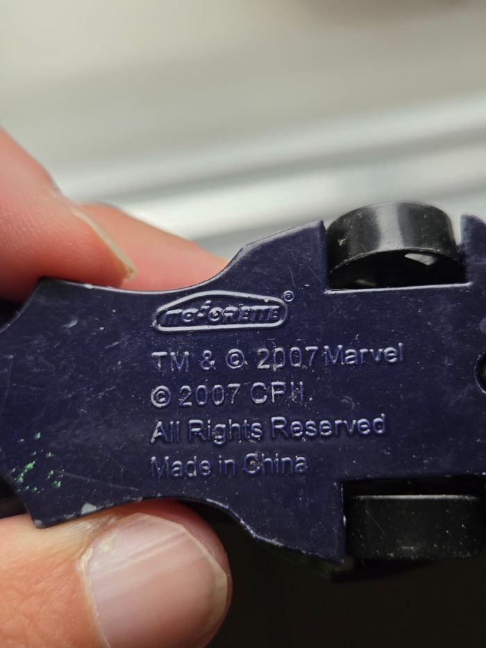 petite voiture de collection issue de la collaboration Majorette et Marvel, datant de 2007.