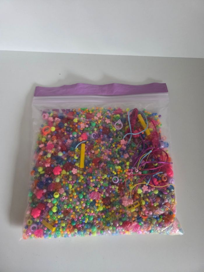 💰 Je fais des prix pour les lots, n'hésitez pas à visiter mon dressing ! 🚩 Envoi rapide et soigné • sac rempli de perles de toutes formes et couleurs + fils et élastiques • ​État : Bon état (perles prêtes à être utilisées) • ​Marque : Aucune (Lot de perles diverses) ​✨ Contenu du Sac & Détails Clés ​C'est le kit parfait pour se lancer dans la création de bijoux ou pour compléter une collection ! • ​Variété Incroyable : Le sac contient un mélange très diversifié de perles : • ​Perles Hama/Pony classiques (les petites perles rondes brillantes). • ​Perles en forme de fleurs, de cœurs, d'étoiles. ●Différentes tailles, textures et degrés de transparence. • ​Couleurs : Un véritable arc-en-ciel ! Beaucoup de couleurs vives (rose, jaune, vert, bleu, orange, etc.) idéales pour des créations estivales ou pour enfants • ​Accessoires Inclus : Quelques morceaux de fils et d'élastiques sont inclus (visibles sur la photo) pour commencer immédiatement à fabriquer des colliers, des bracelets ou d'autres projets de loisirs créatifs • ​Quantité : Une très grande quantité (le sac Ziploc est bien rempli) – Parfait pour de nombreux projets ! ​💡 Idéal Pour : • ​Les enfants et les adolescents qui aiment fabriquer leurs propres bijoux • ​Les nounous/assistantes maternelles pour des activités manuelles • ​Les projets de loisirs créatifs / DIY.