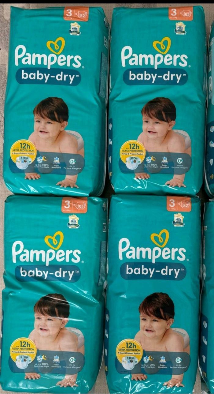 Annonce présenté = article dispo N'hésitez pas à commander, d'autant plus que la messagerie bugg +++ Et le prix est ferme , merci Lot de 4 paquets de 52 couches pampers baby dry pampers taille 3