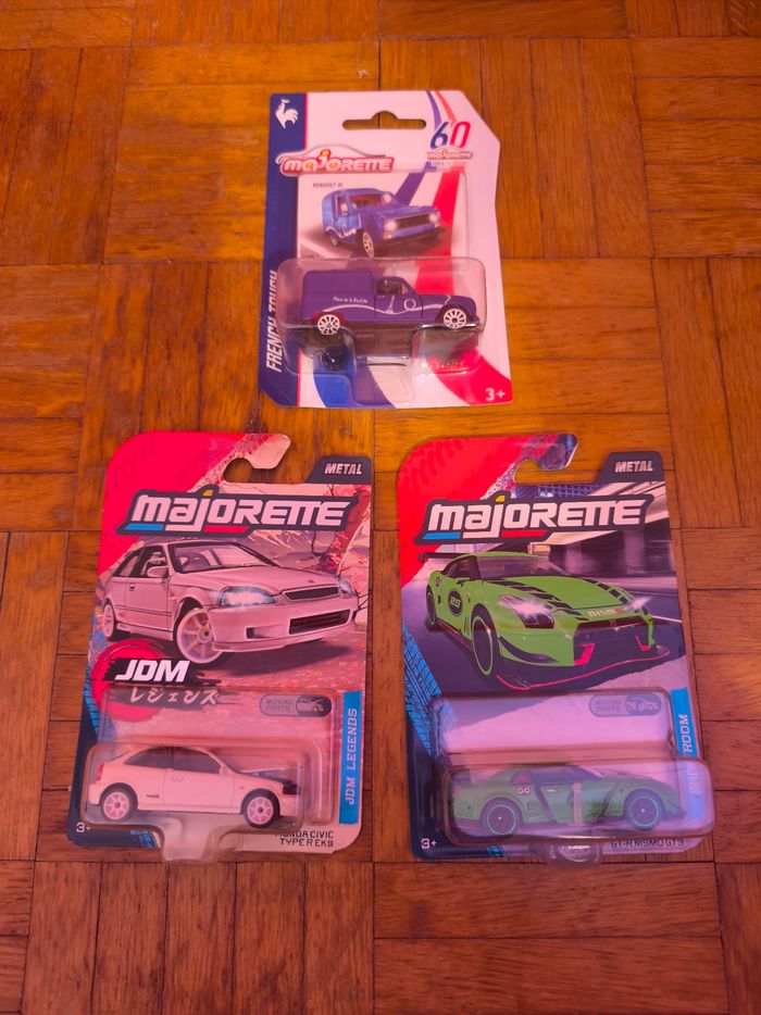 Bonjour, Je met en vente ce lot de voitures Majorette avec : - GT-R Nismo GT3 Chase - Honda Civic Type R EK9 Chase - Renault 4L French Touch