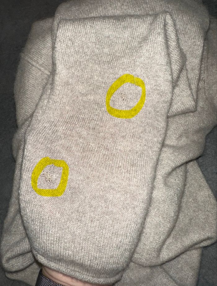 Pull - Excellent état - Taille 40 équivalent L Dimensions en bas de l’annonce - Beige crème sable - 100% cachemire - Deux petites poches à l’avant - Ultra doux et chaud - Col montant large - Réparé à deux endroits au niveau d’une manche (voir photos) Dimensions: - 42cm niveau épaules - 46 à 60cm niveau aisselles - 66cm de long