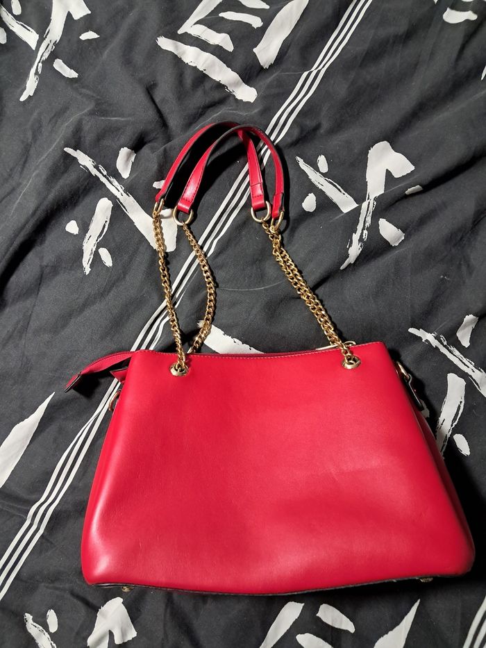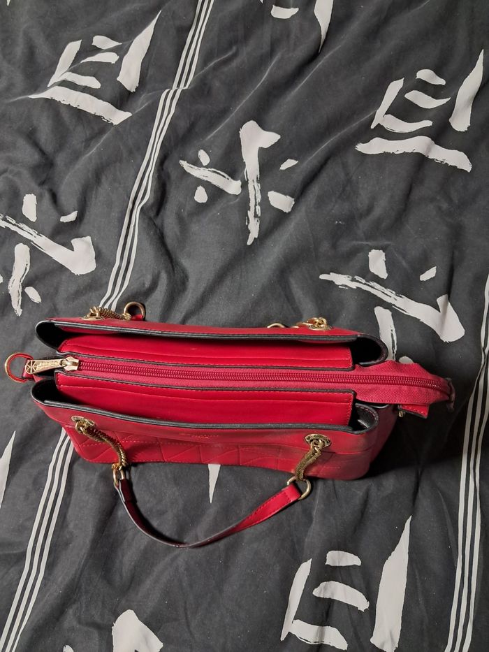 Sac à main #rouge avec une bandoulière réglable en plus #gallantryparis #zippé avec pleins de poches #chic #chainette #cuir, utiliser 2 fois. #aurore78990accessoires *vous avez -20% à partir de 3articles *envoie en petit format uniquement en relais 😉