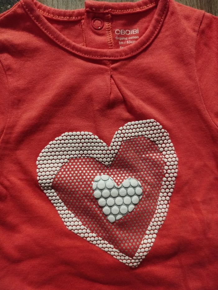 Lot de 2 bodies manches courtes et 2 pyjamas une pièce en coton, plusieurs marques dont Obaïbi et Kiabi. Taille 1 mois, très bon état.