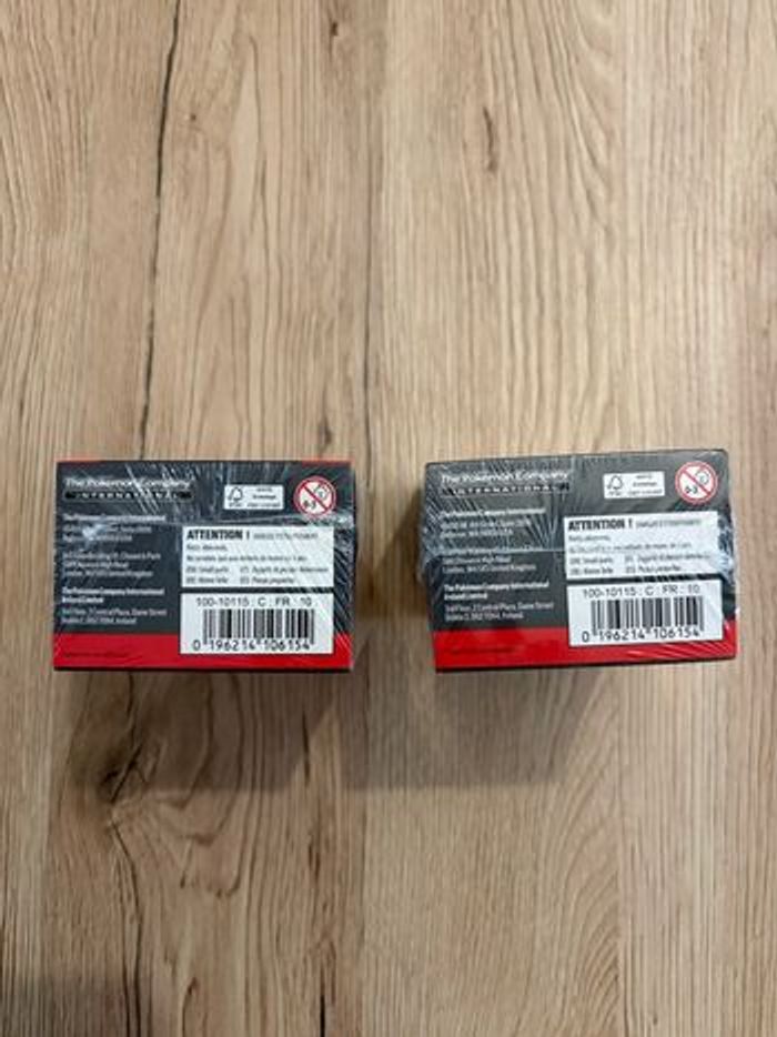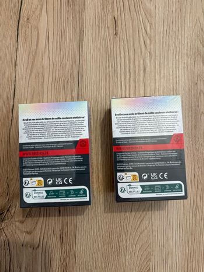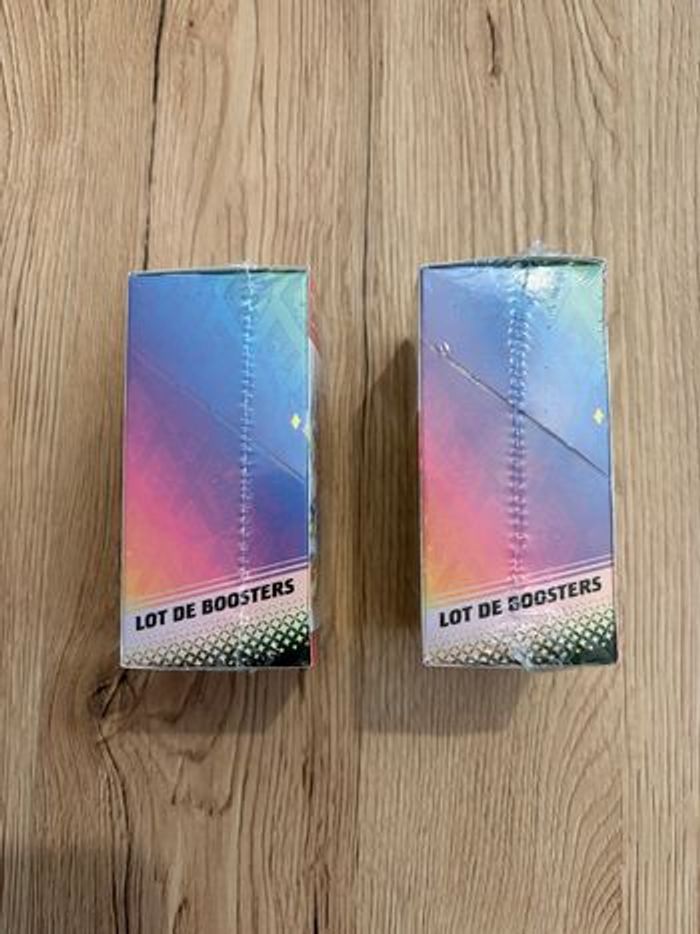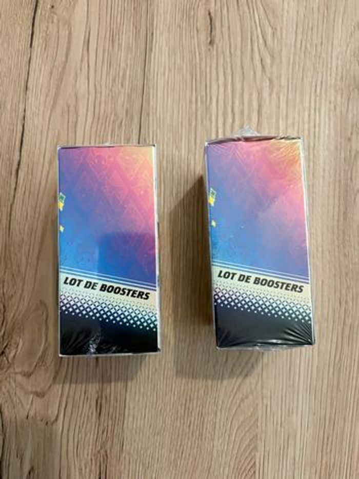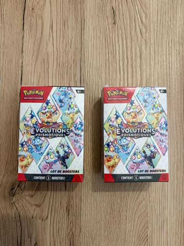 Je vends ce lot de 2 boîtes de boosters Pokémon Évolutions Prismatiques, un jeu de cartes à collectionner.