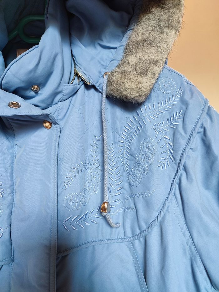 Je vends cette jolie doudoune à capuche (possibilité de l'enlever). Elle est en parfait état, vraiment très peu portée. Couleur bleu clair et motifs brodés. Deux grandes poches ventrales. Vient de la collection originale de René Derhy. Taille 42/44 Dimensions: Longueur = 85cm Largeur aisselles à aisselles = 64cm N'hésitez pas à me contacter si vous avez des questions ☺️ Envoi rapide 📦