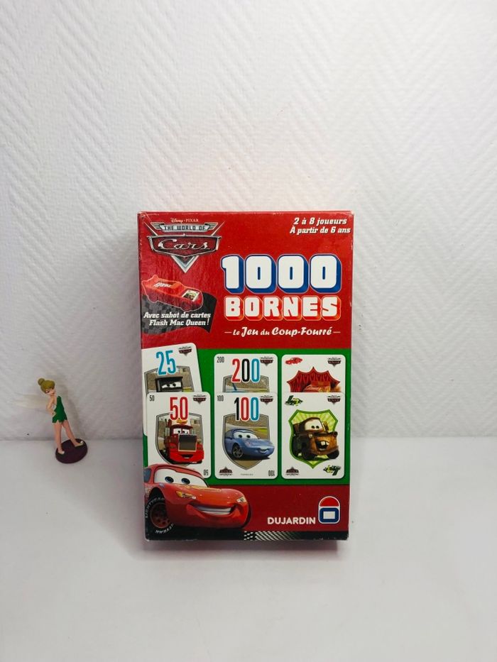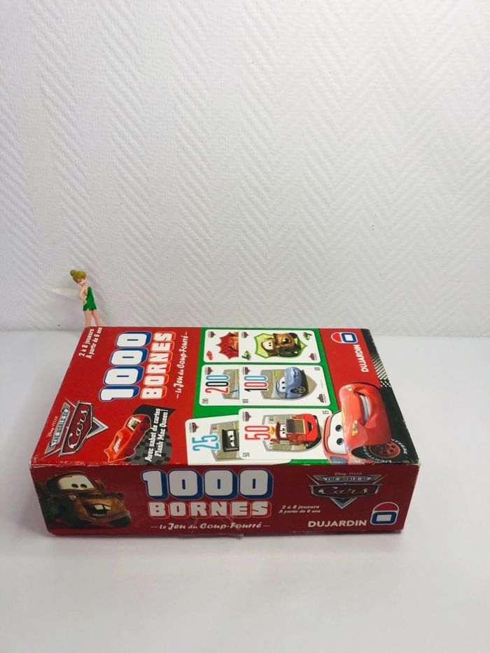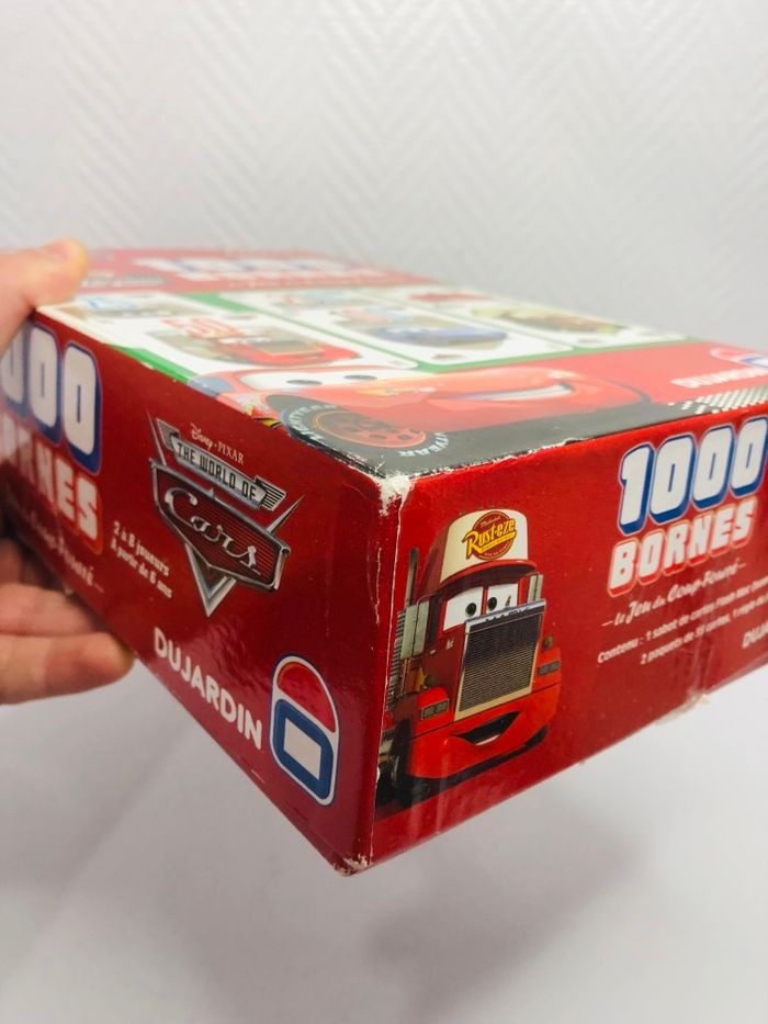 Jeu de société 1000 bornes Cars en très bon état. - Type de produit : Jeu de société - Gamme / Licence : Cars - Âge recommandé : 6 ans et + En très bon état, il manque 1 carte aide mémoire mais ne gêne en rien le jeu Cartes à jouer complètes Boite abîmée