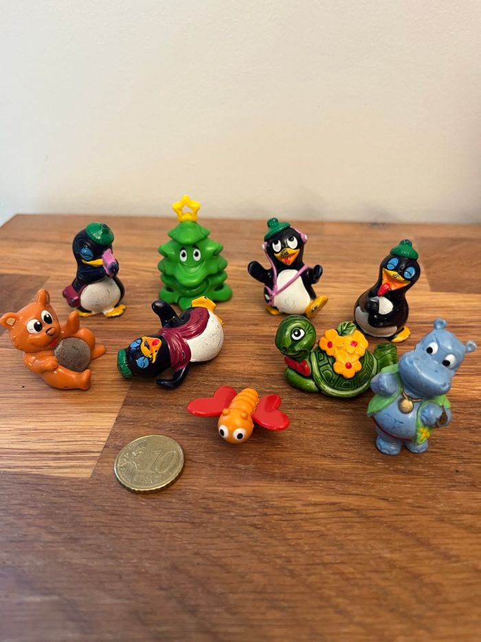Lot de figurines kinder : pingouins, sapin, hippopotame, tortue...