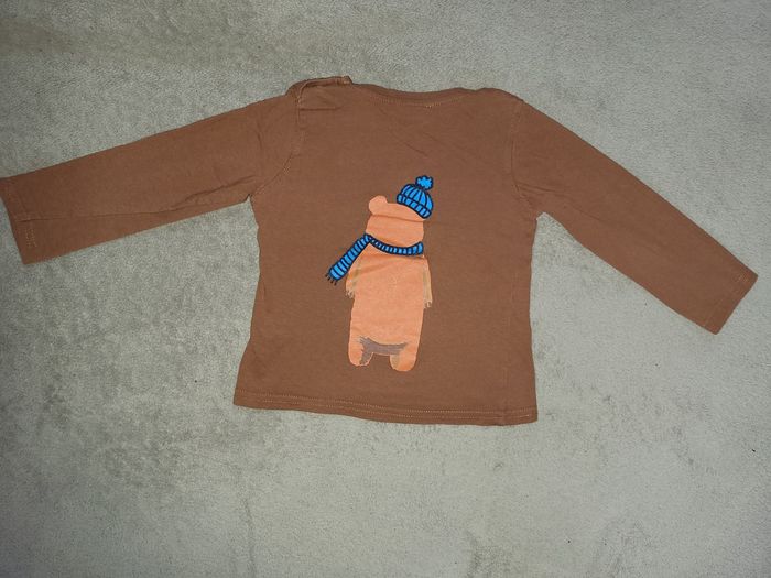 T-shirt manches longues marron Gémo Thème Noël/hiver Motif ours , bonnet et écharpe en relief Dessin à l'avant et à l'arrière #virgy61garcon3ans