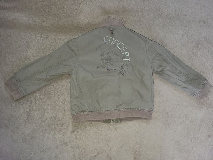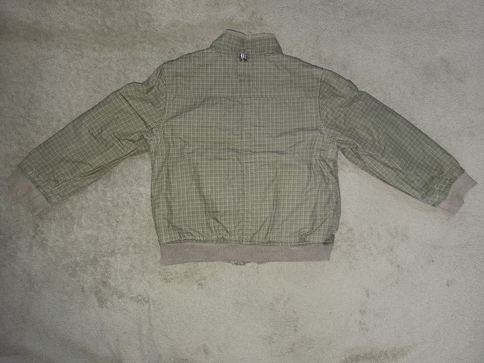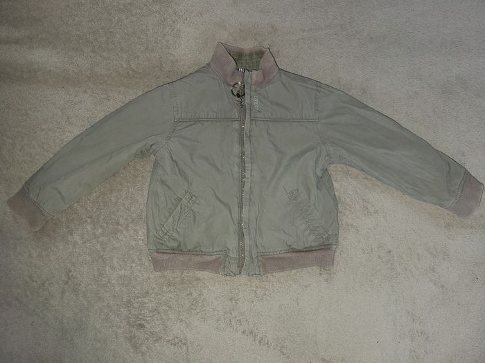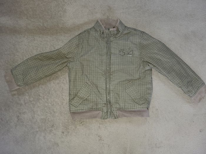 Blouson réversible zippée Obaïbi (sans capuche) Une face à petites carreaux L'autre face unie avec motif dans le dos Tons kaki gris #virgy61garcon3ans