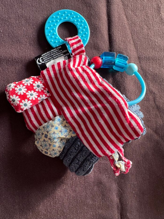 Très bon état Peu utilisé ; légères bouloches par endroits J’ai aussi le tigre en hochet et l’attache sucette hippopotame - voir mon dressing Découvrez ce magnifique hochet d'activités Spéculos le tigre de la marque Les Déglingos. Dès la naissance, bébé va pouvoir s'éveiller tout en s'amusant. Il contient des noeuds, du papier bruissant, des grelots, des perles et un anneau de dentition. Il est facile à manipuler même pour les petites mains de bébé. Il existe en plusieurs modèles et s'accordera facilement aux autres articles de la même collection. Anneaux de dentition, hochet et peluches intégrés Tout doux au toucher Rembourrage en polyester recyclé Dimensions : 24 x 17 x 7 cm Âge : Dès la naissance Matières : Coton, polyester Entretien : Lavable en machine à froid, séchage à l'air libre
