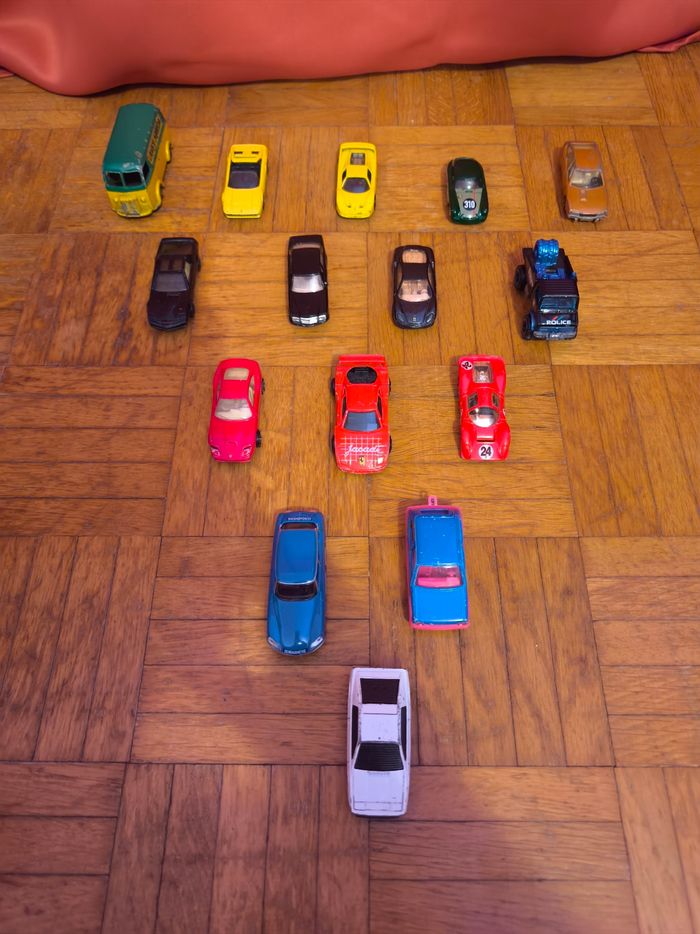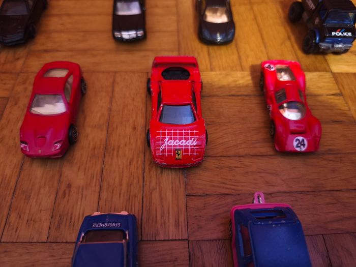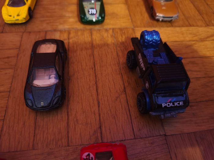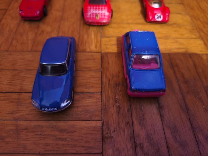 Bonjour, Je met en vente ces voitures à l'unité : - Norev : Citroen DS 23 Pallas Gendarmerie = 8€ - Corgi Juniors : Lotus Esprit = 10€ - Dinky Toys : Peugeot D.3.A = 13€ - Majorette : Citroen CX = 5€ Renault Supercinq GT Turbo bleue = 5€ Ferrari F40 Jacadi = 20€ - Hot Wheels : Mercedes Benz Unimog I300 Swatt = 10€ Mercedes 380 SEL 1981 = 20€ K.I.T.T 2011 = 15€ Porsche 356 Outlaw = 10€ Ferrari P4 = 5€ Ferrari 550 Maranello = 4€ Ferrari 360 Modena = 8€ Ferrari F50 jaune = 5€ Ferrari 308 GTS jaune = 5€